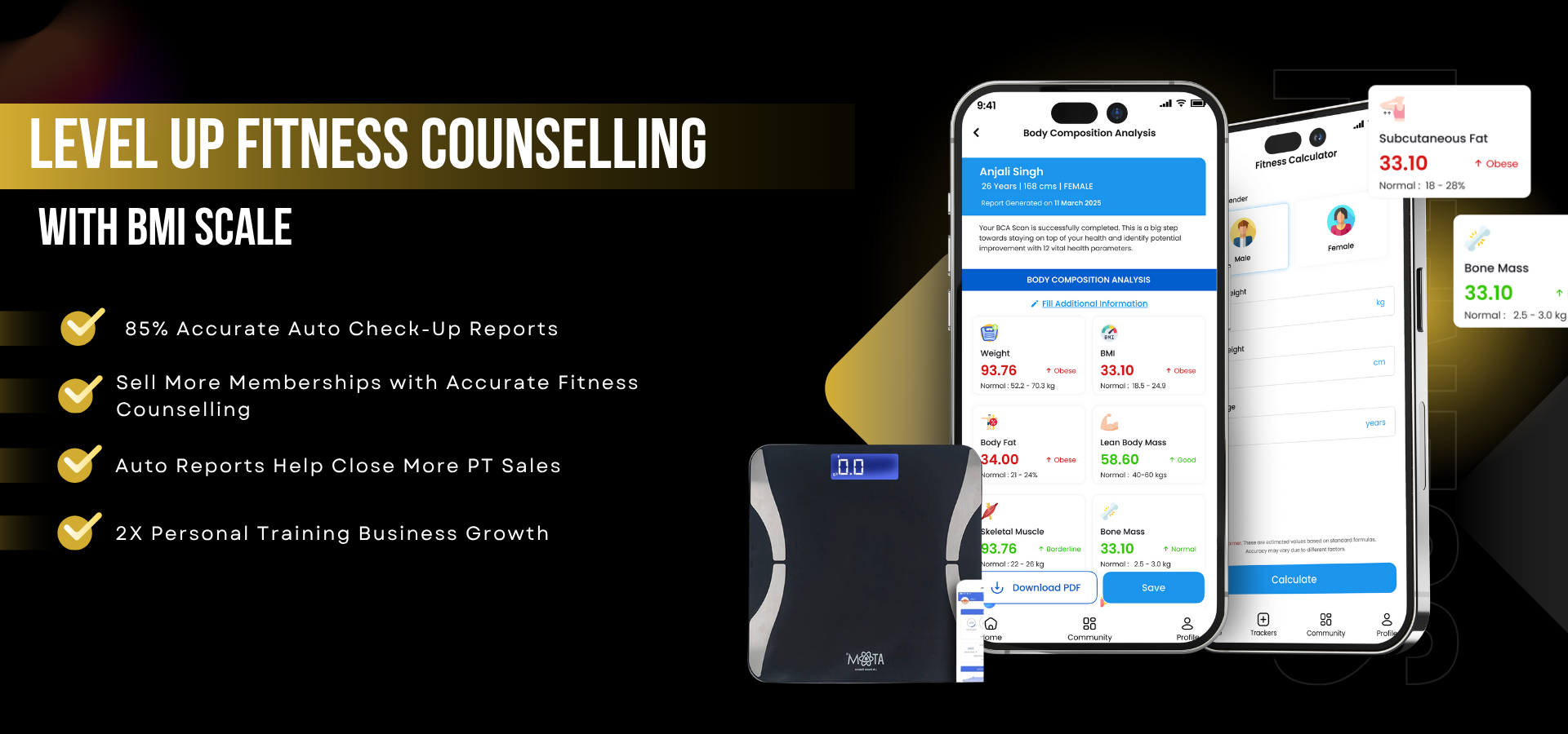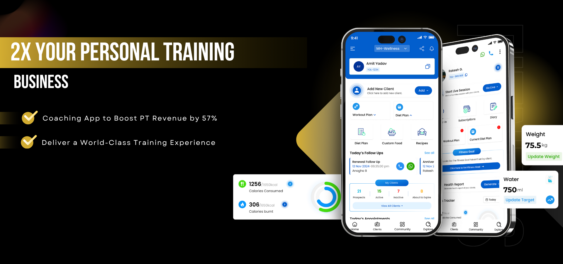 - Track client progress, calorie consumption, etc